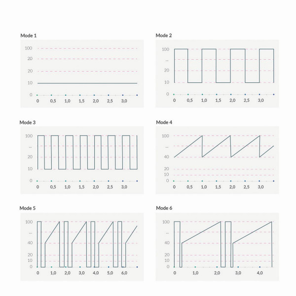 Виб­ра­тор оснащен 8 программами виб­рации с 5 уров­нями интен­сив­но­сти. Управ­лять режимами, Вы сможете при помощи спе­ци­аль­ных кнопок, рас­по­ложен­ных на ручке вибратора